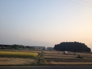 青塚周辺の田んぼは稲刈り真っ盛り。郷愁漂う風景が広がっています。