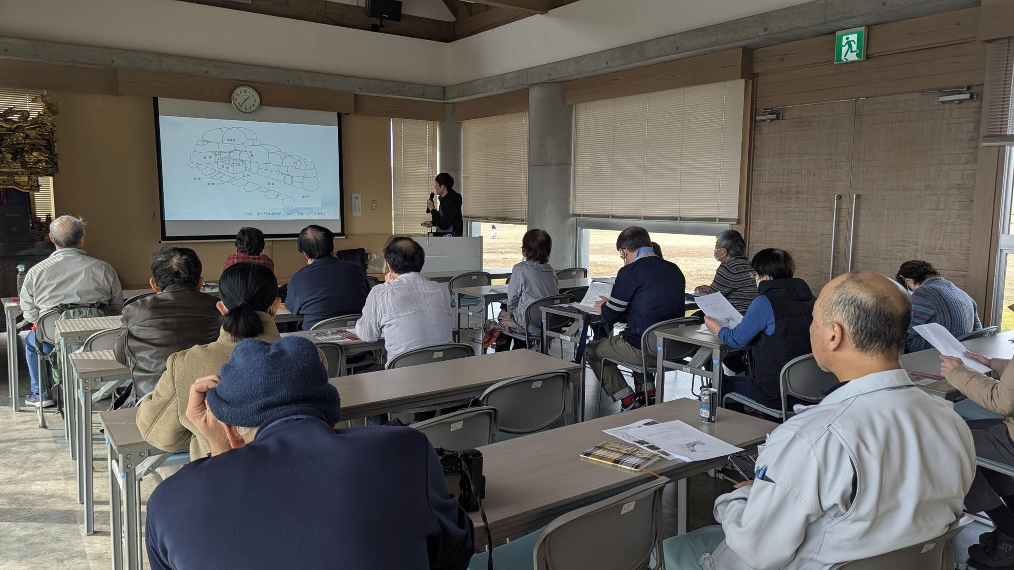 午後からは、ガイダンス施設にてニワ里カレッジ、高知大学4年生の長尾さんに「南国高知の古墳文化」