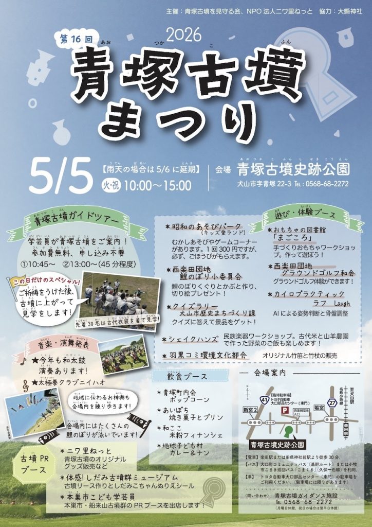 今年はゴールデンウィーク中の5月5日(火祝)に青塚古墳まつりを開催します!